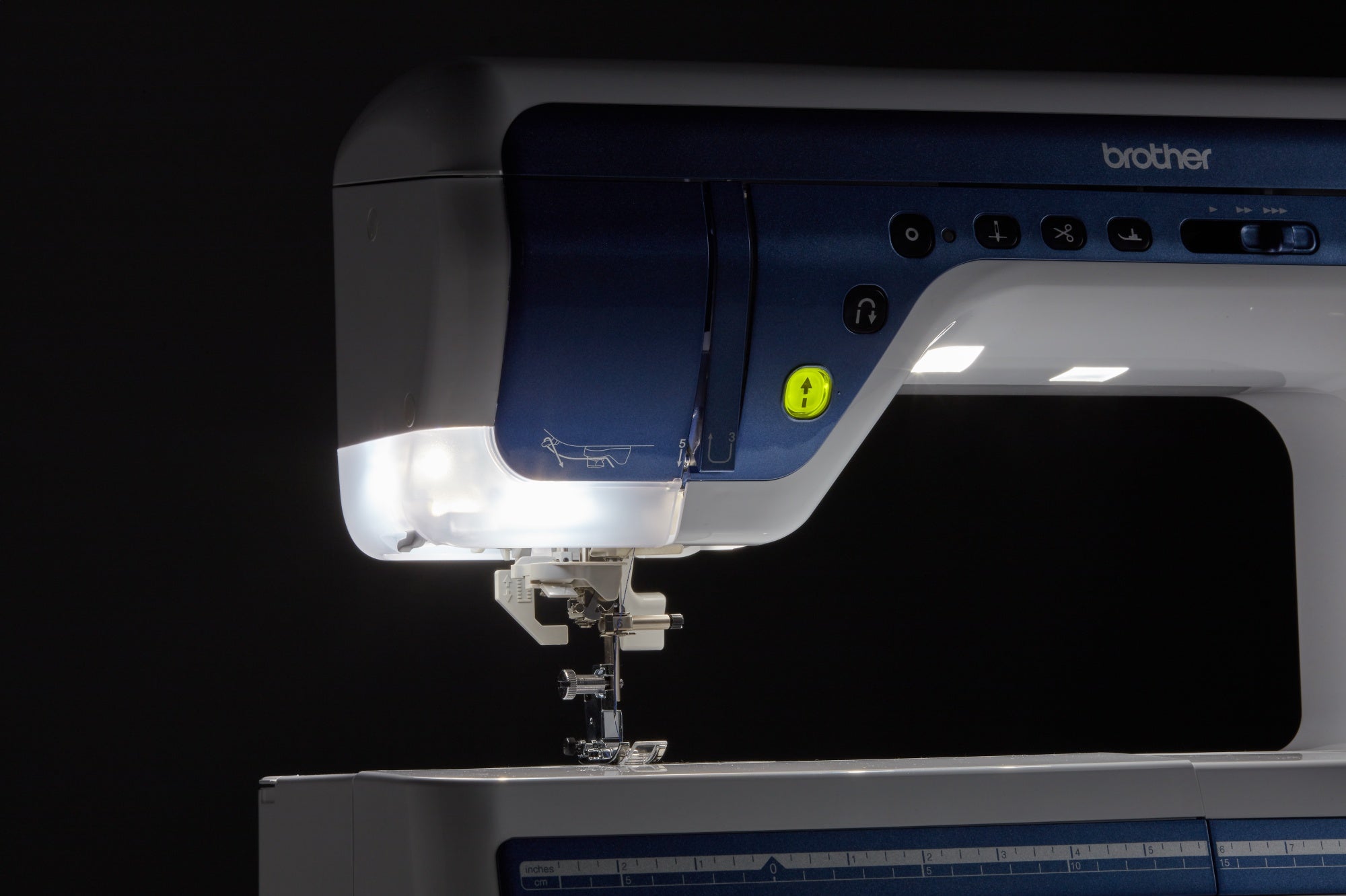 Ultra-bright lighting The V5LE’s ultra-bright LED lighting gives a crisp, bright, natural light, so you can see colours and stitch details easily, no matter what your lighting conditions. Fully adjustable, so you can set it at a level to suit you.