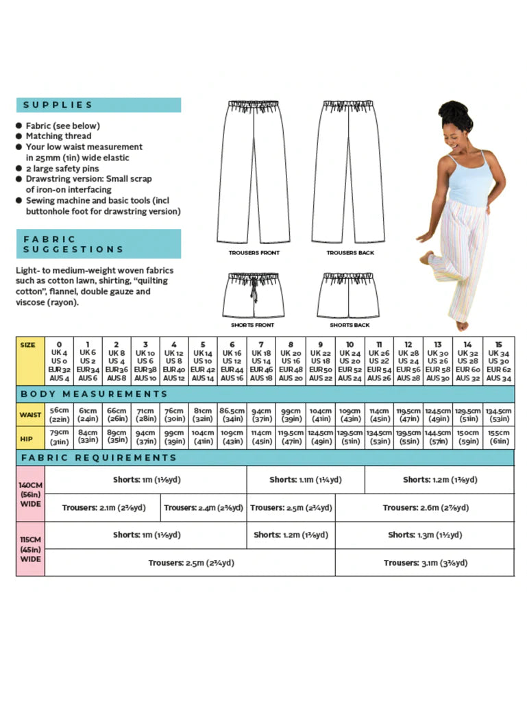 Jaimie Pyjama Shorts or Bottoms - Paper Sewing Pattern
