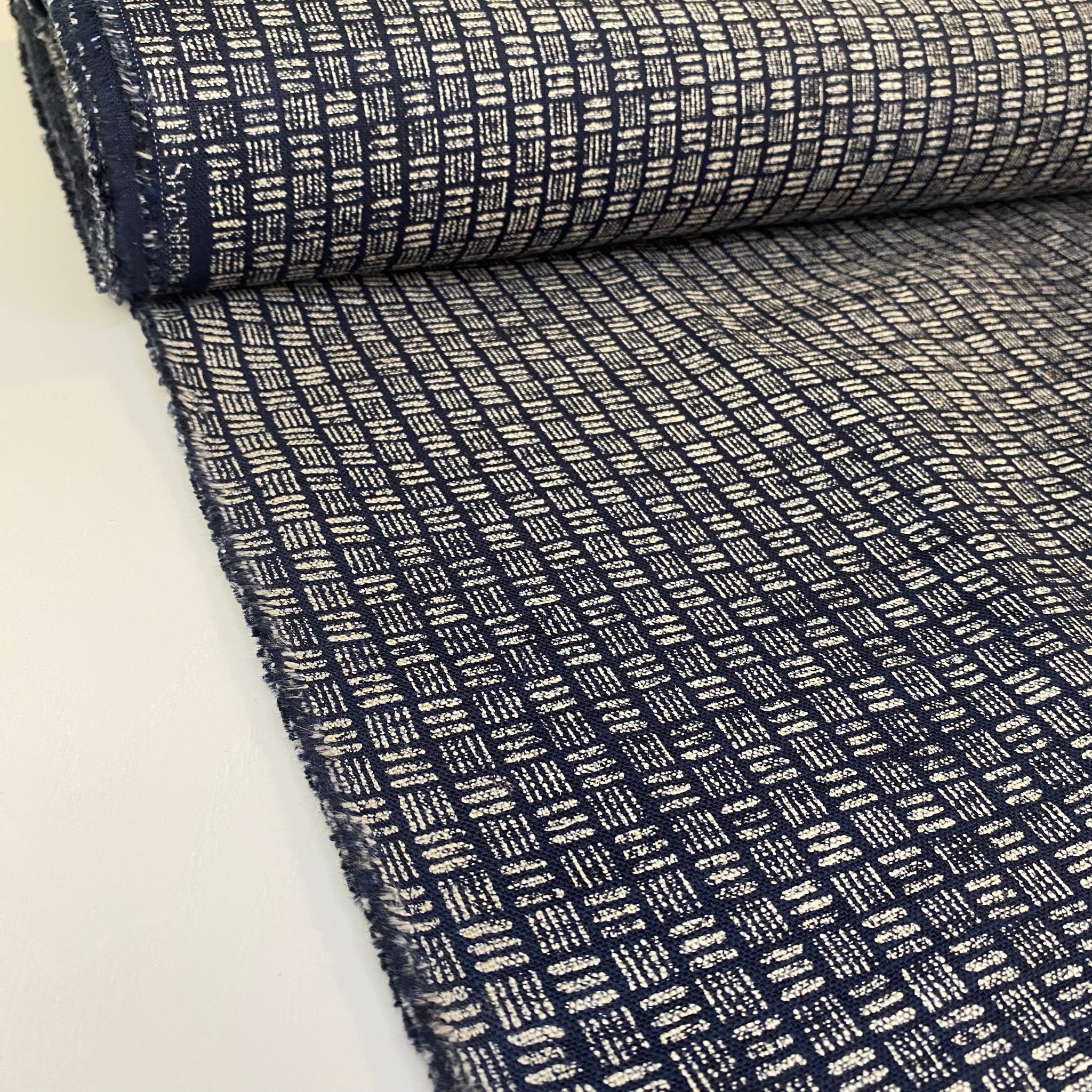 This Japanese linen textured fabric is a Nara Homespun Sevenberry cotton with  a variety of patterns. It has a 'rustic' hand feel and is suitable for dressmaking and soft homewares including curtains, accessories, quilting...