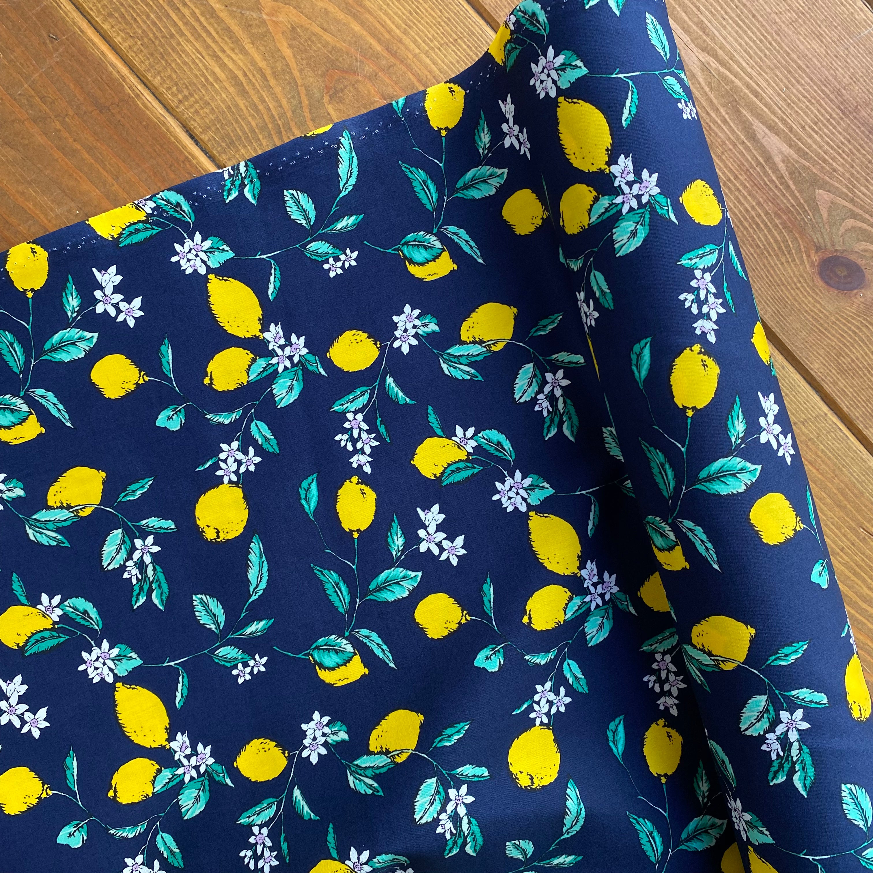 Navy Lemons - Cotton Poplin Fabric - Oeko-Tex Standard 100