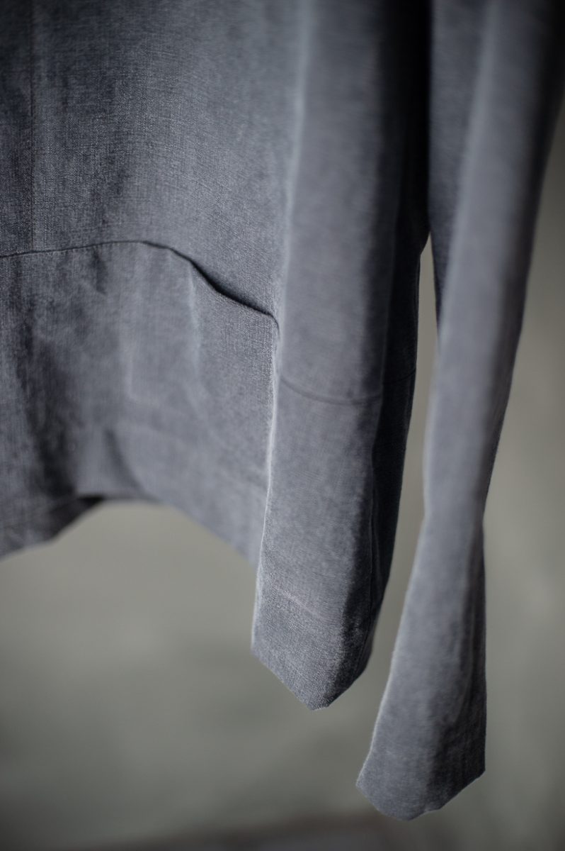 It works well in fabrics as diverse as heavy wool and oilskin. If you want to keep the boxy shape choose something with structure and body, if you use something like linen it will have a softer more slouchy look.